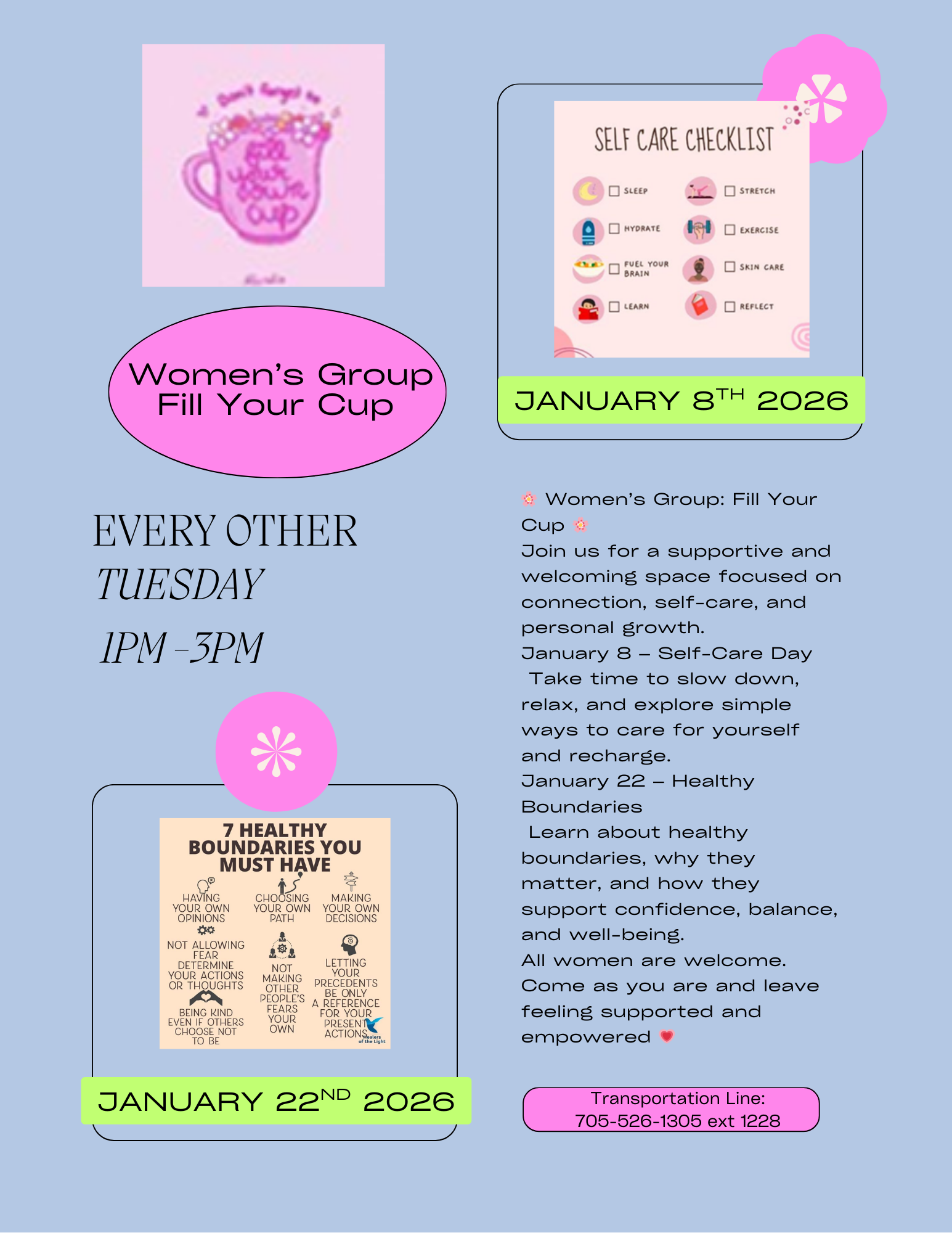 Darlene Forget, Program Supervisor – 705-526-1305, ext. 1227