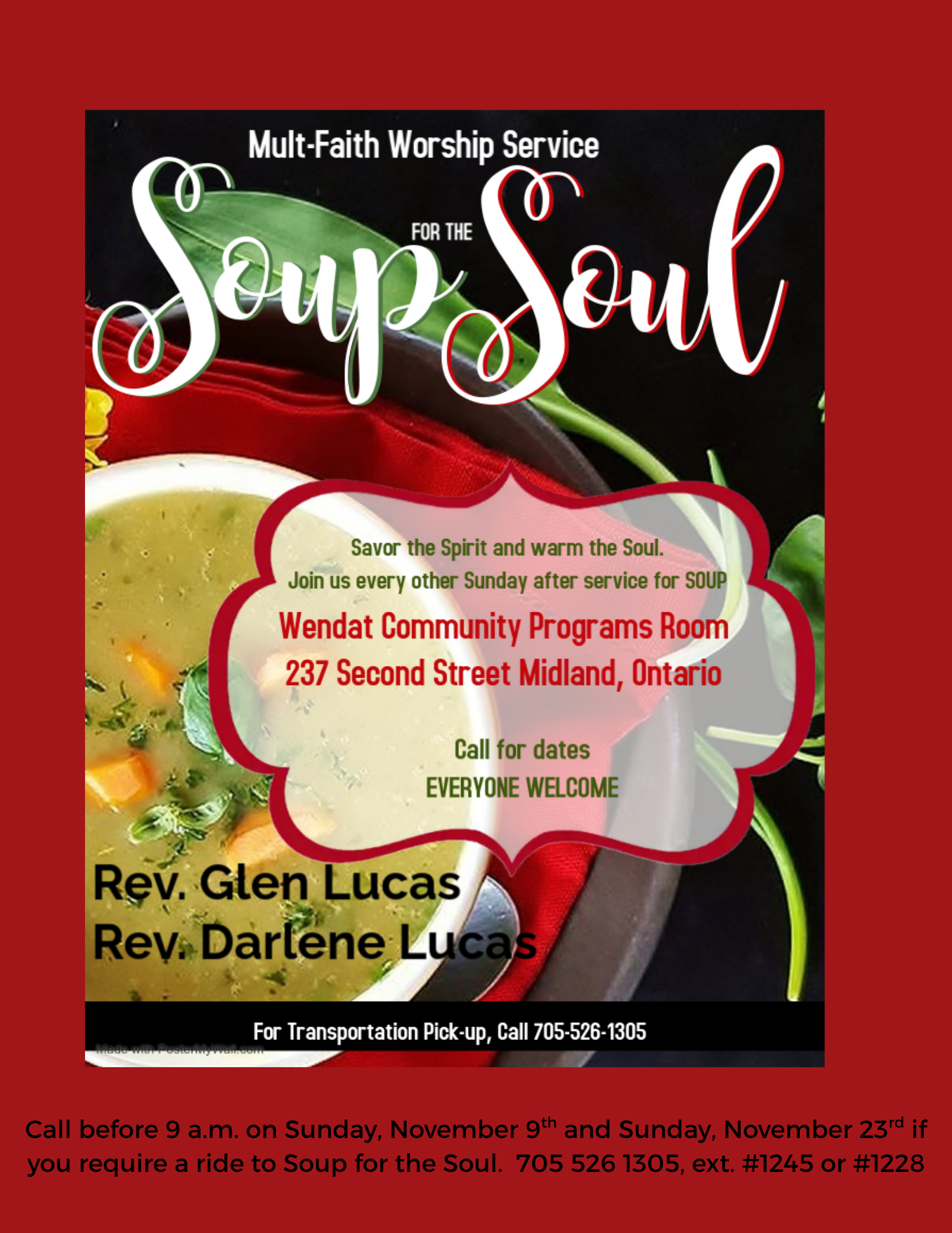 Every second Sunday: Soup for the Soul with Pastors Glen and Darlene Lucas