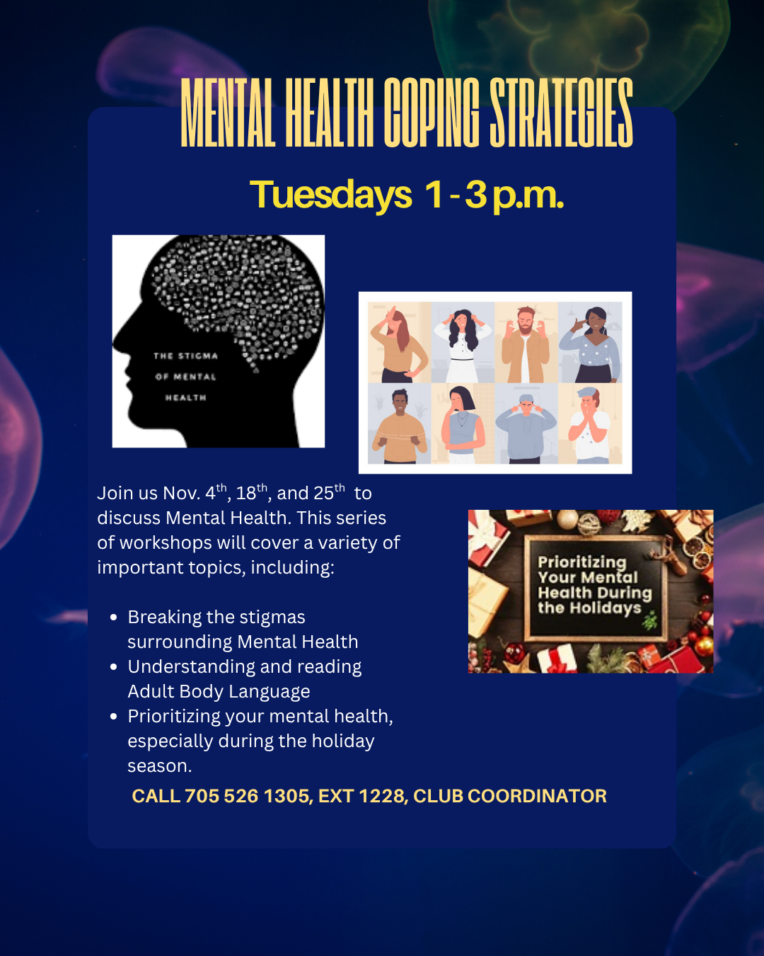 Tuesday: Mental Health Coping Skills-12:45 pm – 3 pm